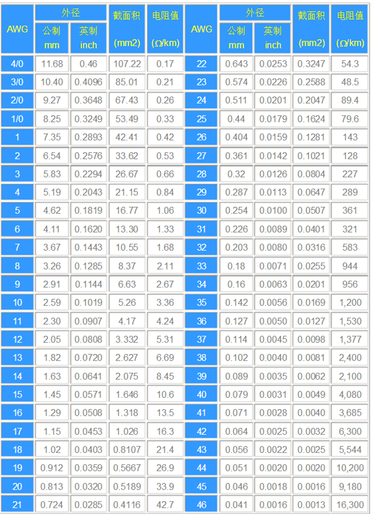 線材常說的AWG是什么意思?