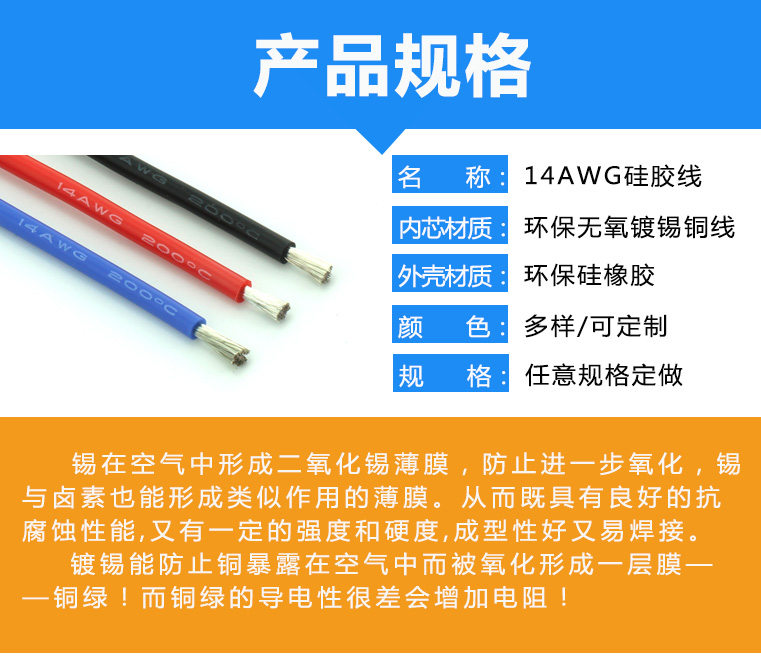 14AWG硅膠線 UL耐高溫鍍錫無氧銅高溫焊接電子線